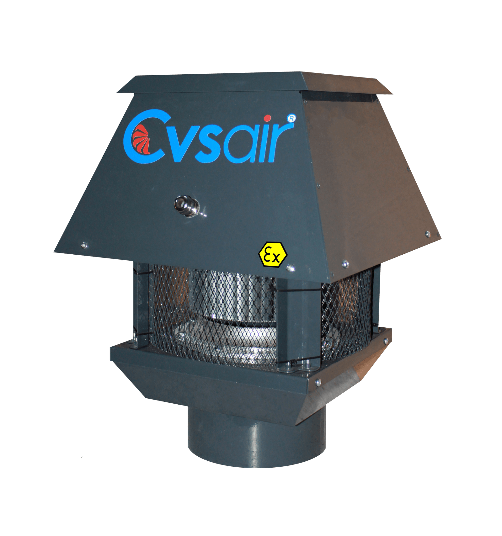 Cvsair exproof radial roof fans are manufactured from galvanized steel sheets for the maximum protection against corrosion, external effects and long service life. With the help of galvanized layer fan case become very durable and hardwearing. Non – galvanized metal surfaces are oxidized by reacting with the oxygen in the environment and begin to rust. The zinc layer starts oxidizing before the metal and prevents the metal layer from being damaged so there will be no loss of strength. Exproof radial roof fans impellers are made of aluminium and certified according to the EN 14986:2006 standard.